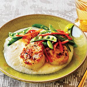 YIELD: 4 servings (serving size: 1/2 cup puree and about 4 scallops)