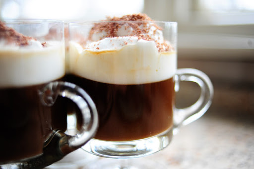 Pour the coffee/dulce de leche mixture into each glass. Top with a heaping tablespoon whipped cream and grated chocolate of your choice.