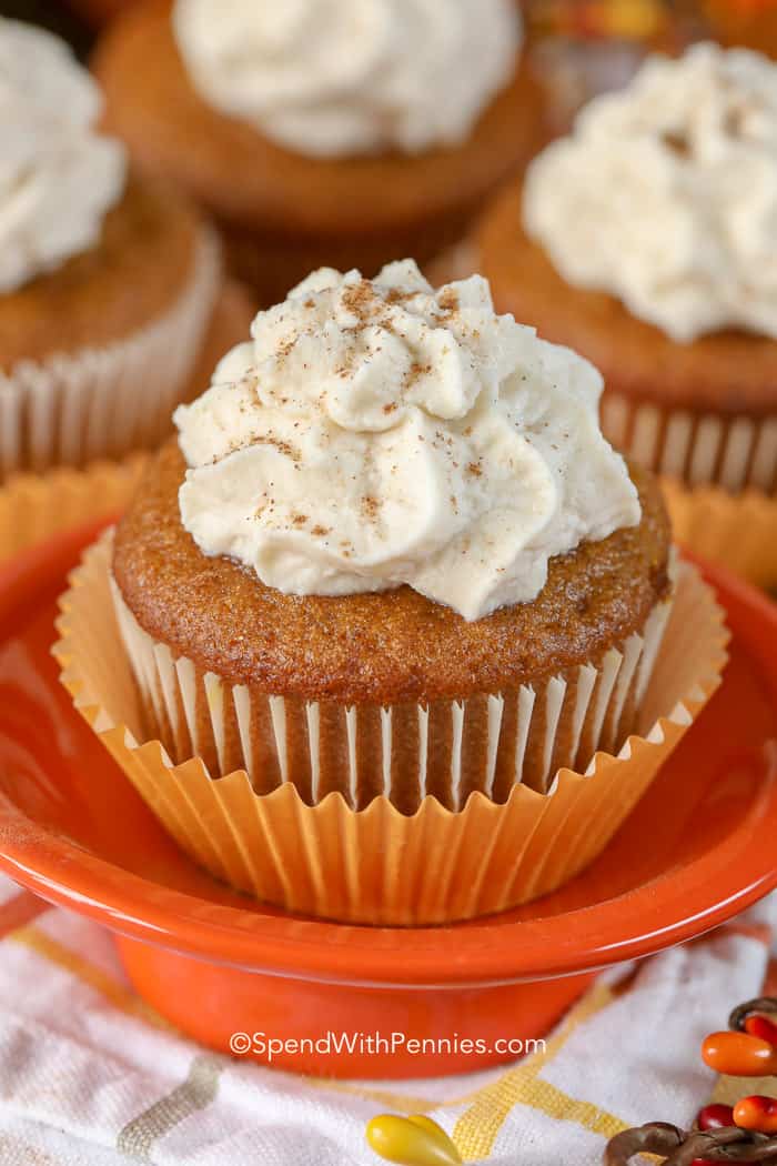 Pumpkin cupcakes are the perfect way to get your autumn baking on! They mimic the flavors of pumpkin pie perfectly and taste absolutely amazing with your favorite frosting or maple whipped cream!