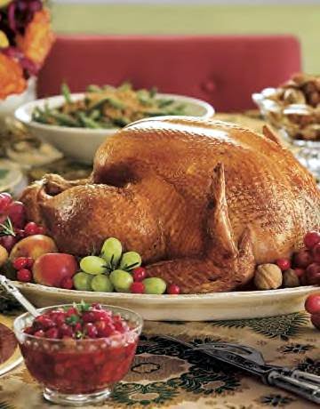 herb butter. Remove foil tent from turkey during the last 45 minutes of baking and baste once with melted butter. The turkey is done when the thigh meat reaches and internal temperature of 170º. When the turkey is done, remove from the oven; let stand 30 minutes before carving.
