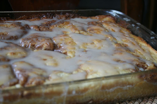 Mix everything together except for the butter. Slowly stir in the melted butter and pour into a greased 9x13 pan. For the topping, mix all the ingredients together until well combined. Drop evenly over the batter and swirl with a knife. Bake at 350 for 28-32 minutes.