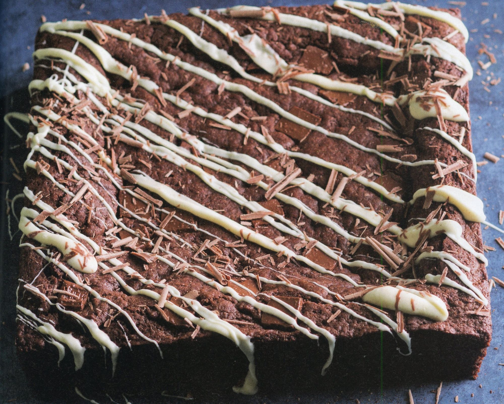 4. In a microwave-safe bowl, melt white chocolate morsels on high in 30-second intervals, stirring between each, until melted and smooth. Drizzle melted chocolate over cooled brownie. Garnish with chocolate shavings, if desired.