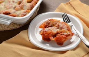 4.Arrange filled shells in the prepared dish, stacking some as necessary so they all fit.