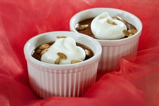 2. Serve the pots de crème with a dollop of whipped cream, a sprinkling of candied pumpkin seeds and a pinch of salt.