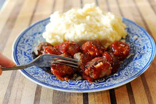 Combine all sauce ingredients. Pour over meatballs and bake at 350 degrees for 45 minutes. Serve with egg noodles, mashed potatoes, or crusty French bread.