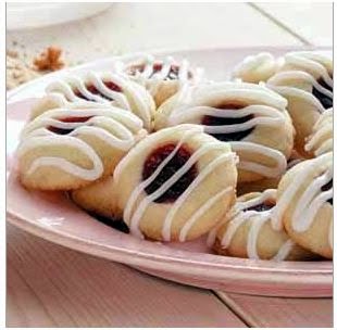 Bake at 350° for 14-18 minutes or until edges are lightly browned. Remove to wire racks to cool. Spoon additional jam into cookies if desired. Combine confectioners' sugar, extract and enough water to achieve drizzling consistency; drizzle over cookies.