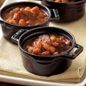 Add mixture to beans and mix thoroughly. Pour beans into a 2 1/2 quart casserole dish sprayed with nonstick spray. Cover and bake 2-3 hours or until beans are tender. Stir occasionally and add more bean liquid if beans become dry.