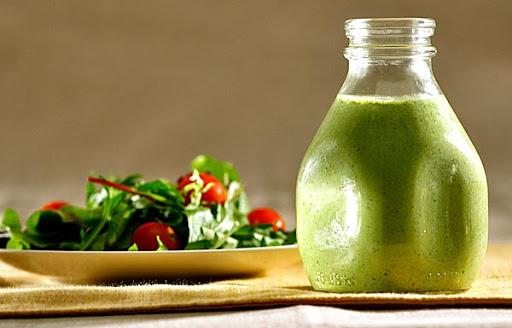 In a blender, pulse together the parsley, basil, chives and spinach along with the cider vinegar. Remove the mixture to a large bowl and whisk in the mayonnaise, mustard, salt, pepper and lemon juice. Taste and adjust the flavorings and seasonings as desired. This makes a generous 3 cups of dressing, which will keep, covered and refrigerated, up to 1 week.