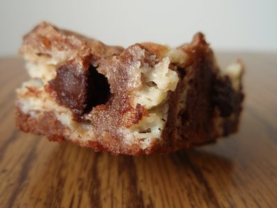Melt the butter and chocolate in the microwave or over low heat, stirring until smooth. Beat in the sugar and eggs. Mix in the flour, cocoa powder, and salt, then add in the vanilla. Spread evenly in the prepared pan. In a separate bowl, beat together the cream cheese, egg yolk, sugar, and mint extract until smooth. Stir in the chocolate chips. Distribute the cream cheese mixture in eight dollops across the top of the brownie mixture, then take a dull knife or spatula and swirl the cream cheese mixture with the chocolate batter. Bake for 30 minutes, or until the batter in the center of the pan feels just set. Let cool, then cut the brownies into squares for dipping.