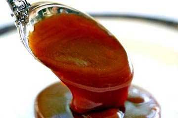 5 Whisk until caramel sauce is smooth. Let cool in the pan for a couple minutes, then pour into a glass mason jar and let sit to cool to room temperature. (Remember to use pot holders when handling the jar filled with hot caramel sauce.) Store in the refrigerator for up to 2 weeks. Warm before serving.