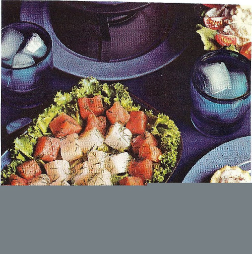 Drain fresh or frozen salmon and/or halibut steaks, 1 inch thick; pat dry. Cut fish into 1-inch pieces. Cover fish and sauces; refrigerate. About 15 minutes before serving, drain fish again; pat dry to prevent spattering.