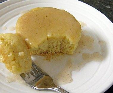 Remove ramekins to a rack to cool slightly, then they may be served with whipped topping or unmold warm cakes on dessert plates and serve with Spiced Vanilla Sauce or a rum sauce.