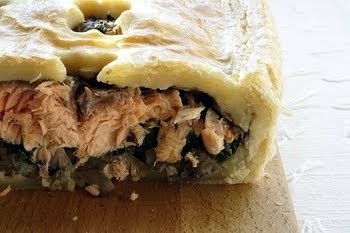 With a slotted spoon, remove salmon and set aside. Reduce sauce by half over moderate heat. Remove from heat and whisk in remaining butter. Return salmon to sauce and gently warm through.