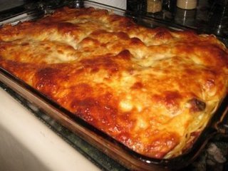 3. Using a 2 quart casserole dish, spread half of spaghetti noodles, cover with cheese and then cover with meat sauce and add remaining noodles to the top.