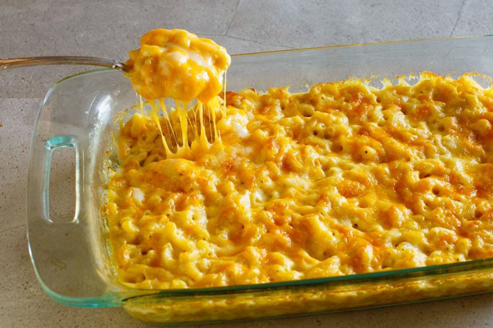 Spray oven safe bowl or dish with cooking spray. Place half of macaroni inside. Sprinkle half of the flour mixture over top and top with half of the butter slices. Sprinkle 1+1/2 cups cheese over. Repeat.
