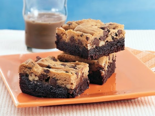 Brookies, where cookie dough is baked on top of brownie batter, are taken to a new level with the introduction of a praline layer.