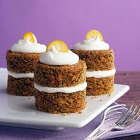 4. Transfer cake to a large cutting board. Using a 2-inch round cutter, make cutouts in the cake, leaving as little space as possible between cutouts.*** You should get 28 to 32 cutouts. For each serving, place one of the cake cutouts on a serving plate. Spread or pipe about 1 tablespoon Fluffy Cream Cheese Frosting atop the cake round. Top with a second cake round and about 1 tablespoon additional frosting. If desired, garnish with coarsely shredded carrot.