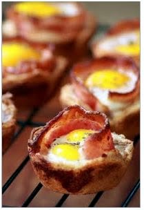 5. Shape bacon strips into the toast cups, fill with 1 Tbs of shredded cheese. Place in the oven for 5 minutes, allowing the bacon to toast just a little more. Remove from oven.