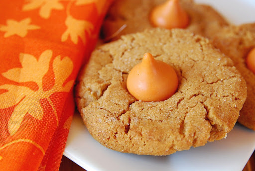 Bake until cookies are beginning to crack on the surface and the bottoms just begin to brown, about 10 minutes. Immediately after removing cookies from the oven, place a pumpkin kiss in the center of each cookie, pressing it down gently. After a few minutes, transfer cookies to a wire rack to cool.