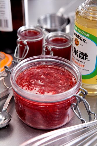 1. In a bowl, whisk the sugar, pectin and salt to combine. If a seedless jam is desired, purée the berries in a blender and strain through a fine-meshed sieve. Otherwise, leave them whole, or cut large ones into quarters.