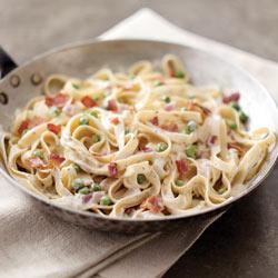 Stir onions into drippings; cook and stir 3 min. or until crisp-tender. Add cooking creme, milk and peas; cook and stir 3 min.