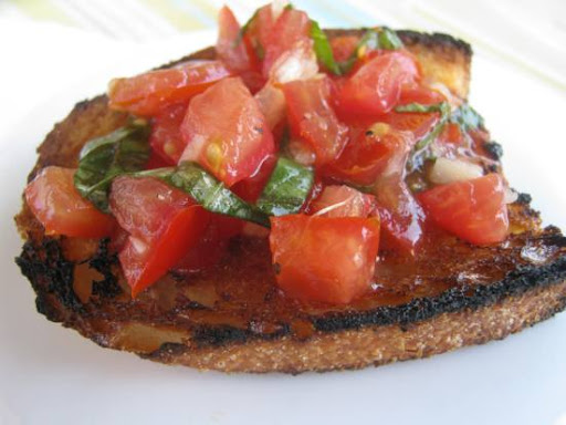 Freshly toasted bread piled high with a mixture of fresh tomatoes, basil, balsamic vinegar, olive oil, and garlic. A delicious, simply prepared summer appetizer.