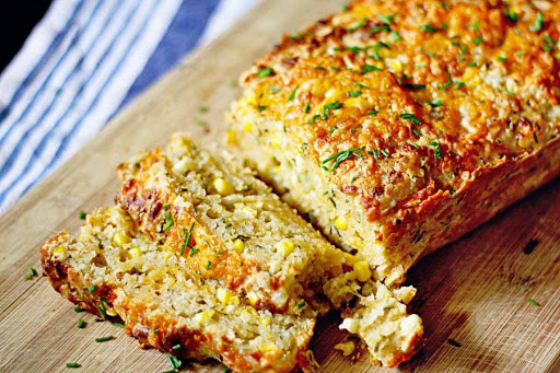 2. In a large bowl, combine flour, sugar, baking powder and salt together. Add 1 cup of cheese, corn and chives. Stir to combine.