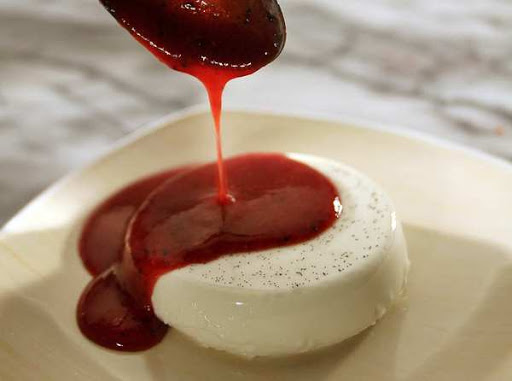 6. About 10 minutes before serving, run a thin-bladed knife around the inside of the ramekin. Dip the ramekin briefly in a bowl of hot tap water, and then carefully invert onto a serving plate. If the panna cotta doesn't unmold right away, tap the ramekin lightly on the countertop to loosen it. If it still doesn't unmold, return it to the hot water bath for another five seconds and repeat. Panna cotta can also be served without unmolding.