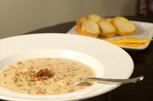 Prepare vegetables and place in a saucepan. Drain the juice from the clams and pour over the vegetables. Add enough water to barely cover and simmer, covered, over medium heat until potatoes are tender, about 20 minutes.