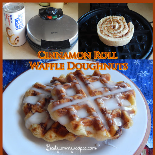 Open container of cinnamon rolls and separate rolls. Set glaze aside. Heat waffle maker to medium. Spray both plates of he iron with cooking spray.
