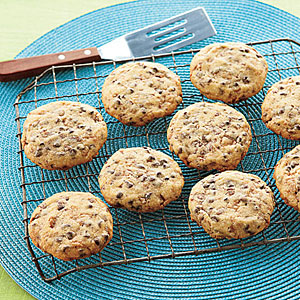 1. Preheat oven to 350ºF and line a rimmed baking sheet with parchment paper. Using an electric mixer on medium-high speed, cream together butter, confectioners' sugar and vanilla until smooth. Stir in flour and salt just until a dough forms. Fold in chocolate chips and toffee bits.