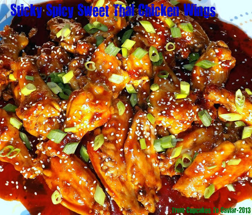 Put your cooked wings in a large heatproof bowl and pour the desired amount of sauce over them. Toss to coat. Garnish with sesame seeds and sliced green onions.