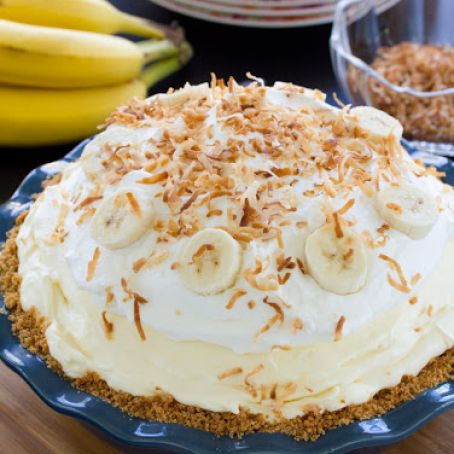 6.When you are ready to serve the pie, decorate the top with more fresh cut banana chunks and toasted coconut.