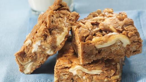 1. Grease bottom and sides of 8-inch square pan with butter or cooking spray. Place cereal in resealable food-storage plastic bag; seal bag and slightly crush with rolling pin or flat side of meat mallet (or slightly crush in food processor).