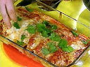 Pile chicken mixture into warm corn tortillas and roll. Line casserole or baking dish with enchiladas, seam side down. Pour hot tomato sauce over the chicken enchiladas and top with cheese. Place in enchiladas in hot oven 6 inches from broiler and broil 5 minutes to melt cheese and set enchiladas. Serve.