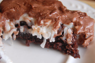 Remove foil top from frosting and microwave for approx 30 seconds until frosting is pourable. Pour frosting over coconut mixture. Let cool completely before serving.