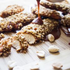 5. Turn chicken half way through baking and coat the other side with the two sauces.
