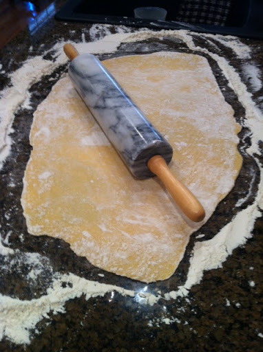 On a floured surface, roll dough until about 1/8 inch thick rectangle