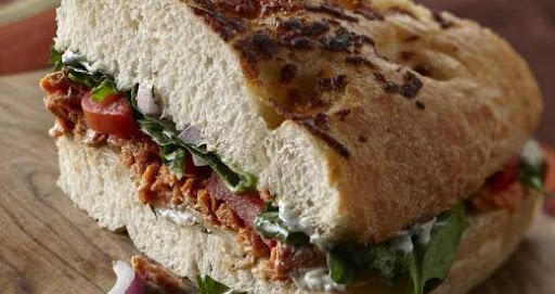 Preheat oven to 400°F. Mix mayonnaise, lime juice, dill, garlic powder and pepper in a small bowl. Slice focaccia bread in half lengthwise. Spread both halves with mayonnaise mixture. Layer on bottom half of bread: Swiss cheese slices, salmon, tomato slices, spinach and onions. Gently press top half of bread over filling. Bake for 5 to 8 minutes, until bread is toasted and cheese melted. Serve immediately. Spinach may be used fresh or wilted. To wilt, heat 1 teaspoon olive oil in medium skillet and add spinach. Sauté 2 to 3 minutes or until spinach wilts. Remove from heat; layer spinach on sandwich as directed.