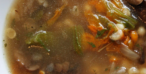 Garnish with the additional flowers, lightly sauteed in more butter. Put soup into serving bowls, add 2 flowers per serving, dollop with crema, and sprinkle with pepitas.