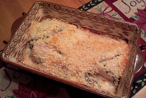 After a wonderful Thanksgiving dinner with family and friends, I found myself with lots of leftovers. This recipe ended up being an easy and delicious way to use up leftover spinach dip... resulting in a moist and yummy dinner.