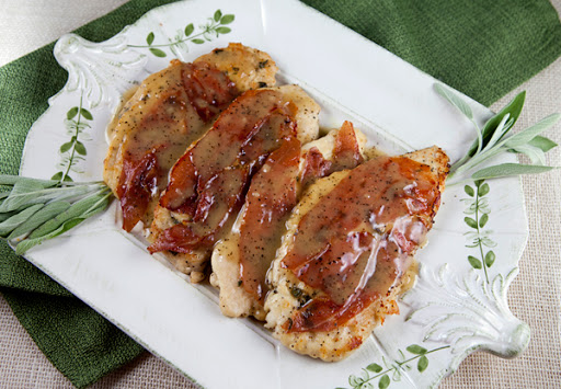 Sprinkle the top of each cutlet with the chopped sage, then cover with a slice of prosciutto.
