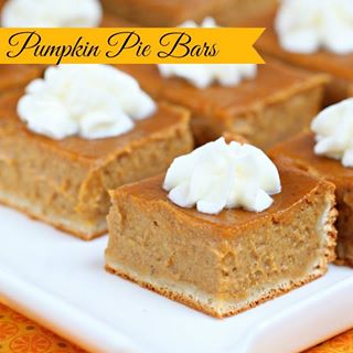 Using hanging paper, lift from pan. Cut into 4 rows by 3 rows to make 12 bars or 4 rows by 4 rows to make 16 bars. Garnish each bar with whipped cream or a dusting of pumpkin pie spice. Store in refrigerator.