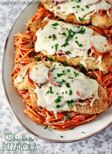 *To make this without the spaghetti bake it in a large casserole dish. Pour the sauce into the bottom and place the chicken on top. You will need to cook it longer - anywhere from 10 - 20 minutes.