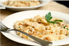 Meanwhile, shred the chicken into bite-sized pieces. Stir the shredded chicken and caramelized onions into the risotto with the remaining 2 tablespoons of butter, lemon juice, parsley and chives. Season with salt and pepper to taste. If desired, add up to ½ cup of the remaining broth mixture to add moisture and loosen the texture. Serve immediately.
