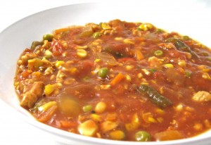 There is something so comforting about a bowl of hearty Brunswick stew. It’s a traditional Southern favorite! Here’s a really yummy, skinny version. Normally made with a variety of meats such as chicken, pork and beef, I’m just using 99% fat-free ground turkey and adding a pot load of vegetables. Each main course serving has 323 calories, 2 grams of fat and 8 Weight Watchers POINTS PLUS. Get ready to receive rave reviews .... it's that good!