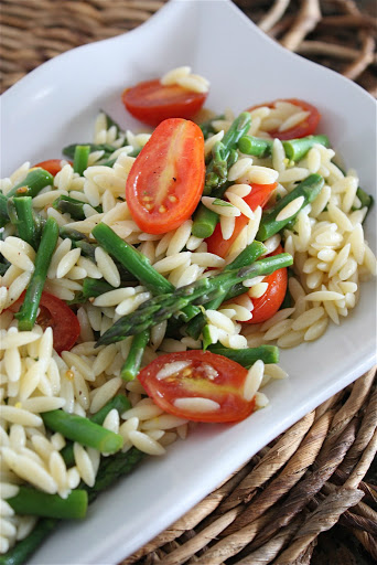 Lemon, grape tomatoes, asparagus and orzo is a delicious, light summer salad, or serve warm as a fresh side dish.