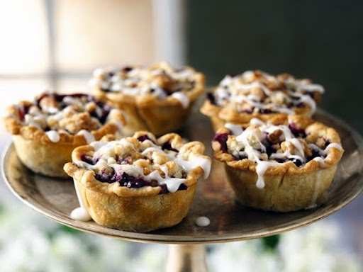 In small bowl, toss blueberries with 2 tablespoons of the sugar and the cornstarch. Divide berry mixture among pastry-lined muffin cups.