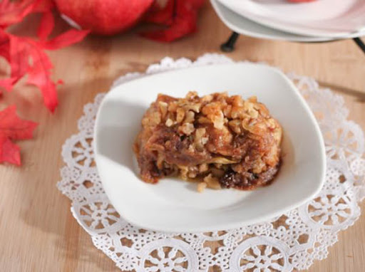 Repeat until all the apples, the syrup, the nuts and the currants are utilized. Bake in the oven for about 30 minutes.