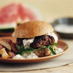 Using 2 teaspoons oil per batch, cook 4 patties at a time in a large nonstick skillet over medium heat until evenly browned and heated through, about 4 minutes per side. Meanwhile, split and toast buns, if using, to serve the burgers on. Garnish the burgers with watercress and the cheese sauce, if desired.